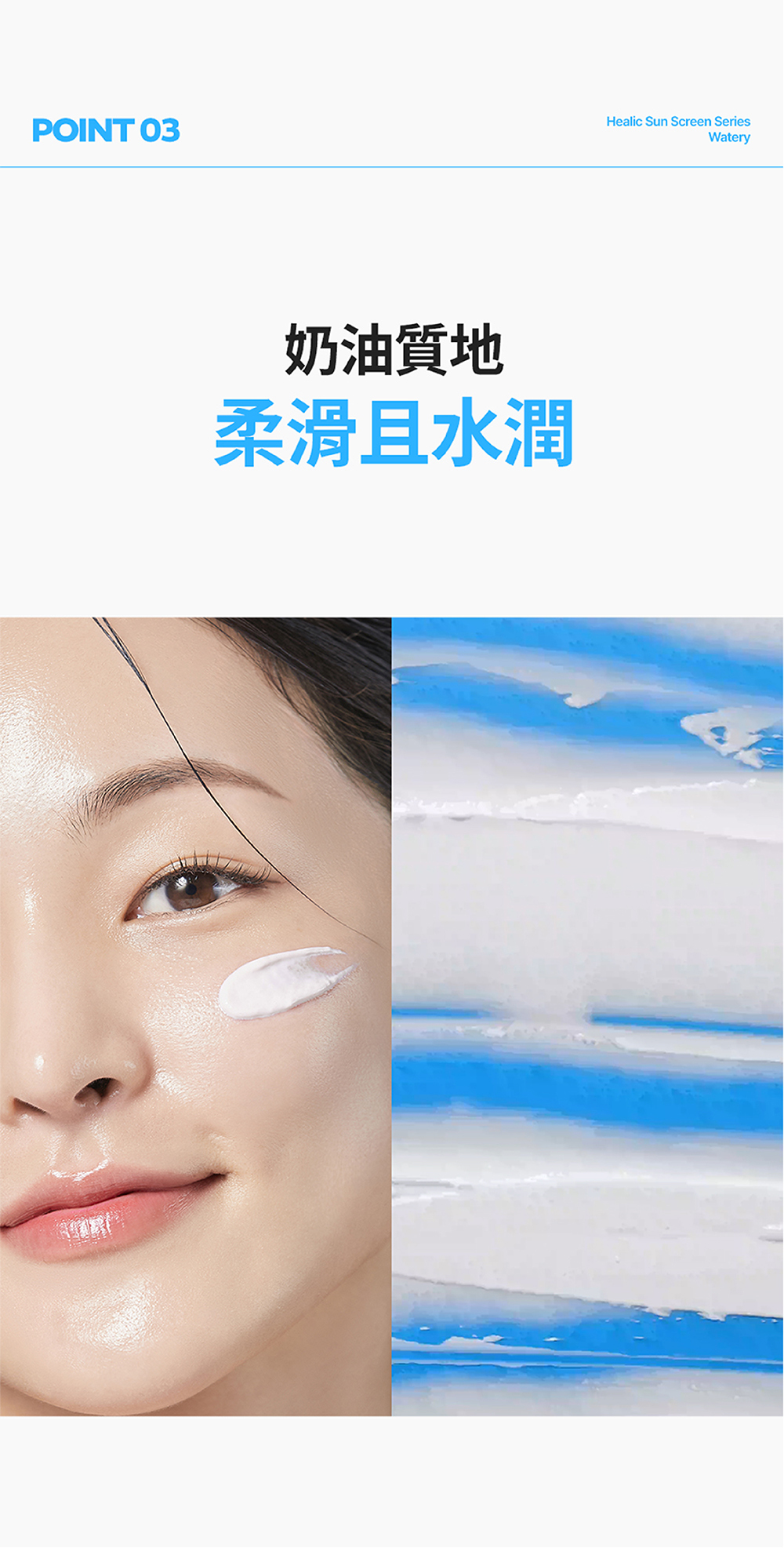 STEP 3 細緻的奶油質地防曬 清透不黏膩 輕盈守護水光肌✨