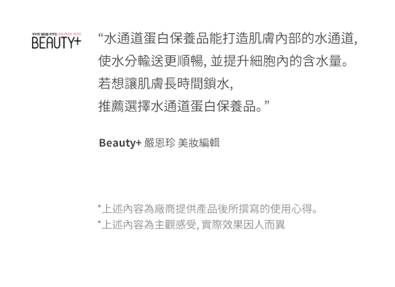 深入肌底啟動天然「水通道蛋白」,雙重鎖水系統,提升肌膚含水量與保水力。